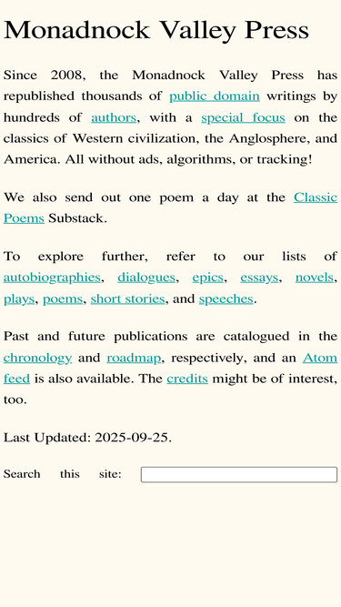 83%thousands of free books and writings in the public domain, optimized for reading on phone, tablet, or computer.