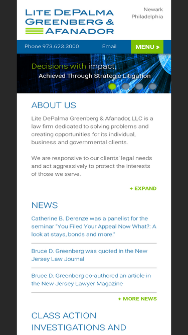 100%Lite DePalma Greenberg & Afanador, LLC located in Newark, New Jersey, has extensive litigation experience in the state and federal courts.