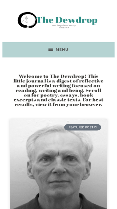 74%The Dewdrop welcomes submissions from all writers. Please send your work using our portal on submittable.com Note that our poetry submissions open and close on a weekly basis, usually from Monday morning to Sunday evening. If you click on the link below and the submissions appear to be closed, do try again in a few… Continue reading Submit to The Dewdrop