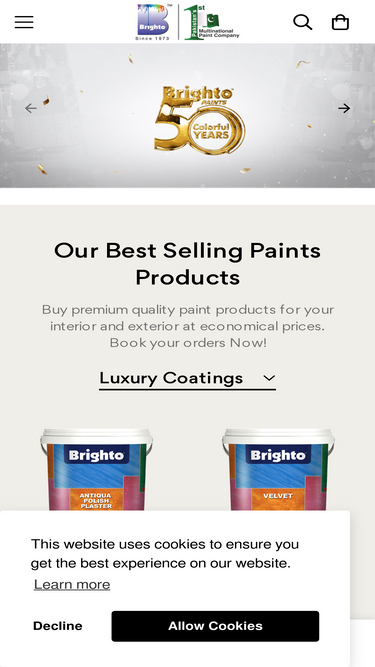 68%The first multinational & best paint company in Pakistan is called Brighto Paints. Buy higher quality paint that meets all of your requirements for interior & exterior paint at a reasonable price.