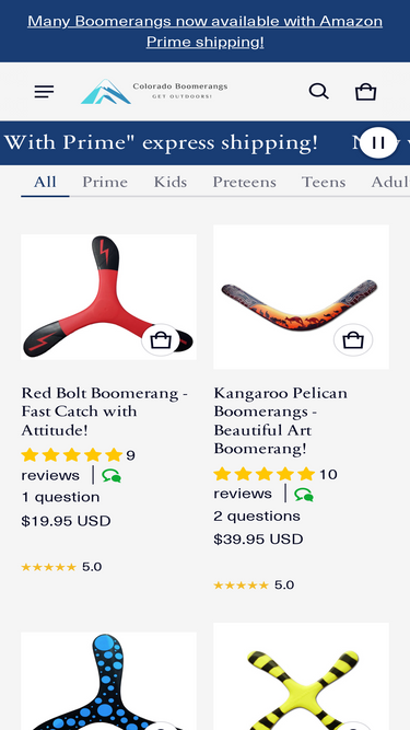 100%Select a boomerang for your age and ability and then learn how to throw and catch with our illustrated instructions and videos. Colorado Boomerangs, LLC now offers most items with "Buy with Prime" express free shipping. We also have free shipping for standard orders above $40. Buy a real boomerang from Boomerangs.com!