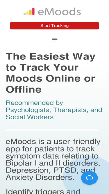 eMoods can help you better understand your symptoms related to Bipolar Disorder, Depression, PTSD, and Anxiety Disorders. Start tracking your mood now.
