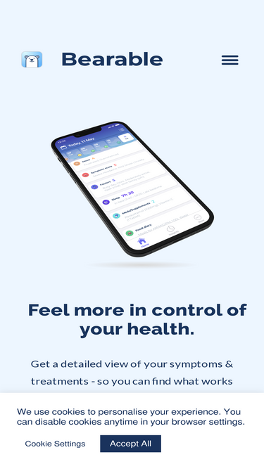 88%Track your symptoms & feel more in control of your health. Get a more detailed picture of your well-being and find what works best for you. Backed by scientific review Reviewed by clinicians as one of the best mobile health applications to track patient outcomes. 5/5 5000+5-star reviews Community-driven We always involve our active