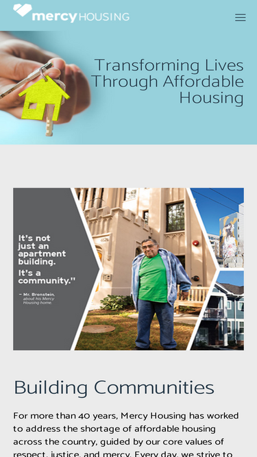 80%Make a charitable to donation to Mercy Housing to help low income families, seniors & those w/ special needs find safe, affordable homes. Donate today