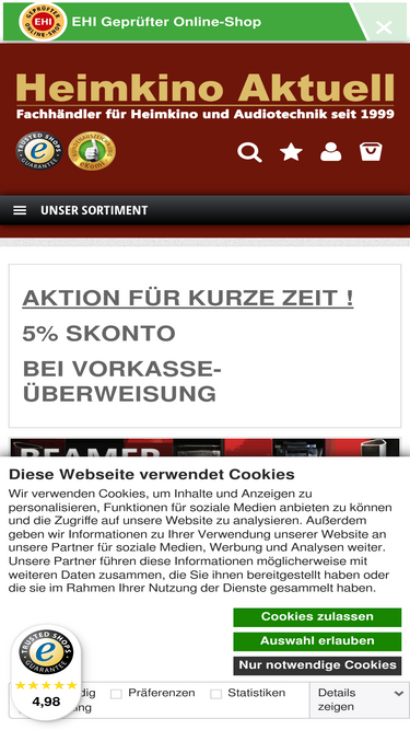 82%JVC DLA NZ900 4K 3D Referenz-Laser-Projektor Gebrauchtgerät mit nur 68 Stunden aus dem Heimkino-Aktuell Studio Dortmund In absolut neuwertigem Zustand in Originalverpackung ! JVC DLA-NZ900 4K Beamer Gebraucht mit neuester Firmware (wird von uns vor Versand oder Abholung aufgespielt) 36 Monate JVC-Deutschland-Garantie (keine Registrierung erforderlich), Service in Deutschland 36 Monate Heimkino-Aktuell-UPS-Abhol-Bring-Garantie im Servicefall 1 x Heimkino Aktuell Geräteprüfung aller wichtigen Funktionen des DLA-NZ800 Laser-Projektors 3 x Heimkino Aktuelle Farbkalibrierung mit Calman Kalibriersystem inklusive 4K HDR Optimierung 1 x Heimkino Aktuell Konvergenzjustage (Abstimmung der 3 RGB-Panels) 1 x kostenloser Versand als Wertpaket mit UPS, das Gerät wird versichert ausgeliefert Bei Heimkino Aktuell, Ihr Fachhändler seit 1999 bekommen Sie : Nur Geräte, die für den deutschen Markt bestimmt sind. Versicherter UPS-Versand in Deutschland oder Abholung im Geschäft nach Absprache auch mit Vorführung. JVC Deutschland Garantie, es ist keine Registrierung erforderlich, da JVC Fachhändler Erweitertes 30-tägiges Rückgaberecht mit Geld-zurück-Garantie. Telefonische Fachberatung an 365 Tagen von 8 Uhr bis 22 Uhr unter 0171 2004042 TEST IN DER audiovision 08/2024 DEN KOMPLETTEN TESTBERICHT UND EIN TOP-ANGEBOT BEKOMMEN SIE BEI UNS! EINFACH E-MAIL AN: INFO@HEIMKINOAKTUELL.DE BETREFF: „TEST PDF JVC-DLA-NZ900 audiovision+ANGEBOT“ Heimkino Aktuell ist geschulter und autorisierter JVC D-ILA Partner ! Wir liefern nur Geräte, vorgesehen für den deutschen Markt, mit 36-monatiger Premiumgarantie. Heimkino Aktuell liefert Ihnen einen farbkalibrierten, geprüften und grundlegend eingestellten 4K Laser-Projektor. -------------------------------------------------- -------------------------------------------------- --------- FARBKALIBRIERUNG Die professionelle Farbkalibrierung ist bei Heimkino Aktuell seit über 15 Jahren kostenloser Standard und für viele Stammkunden zu einem unver