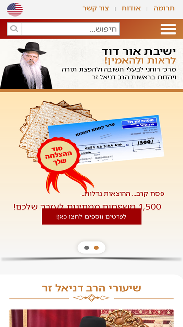 99%האתר החדש של ישיבת אור דוד בראשות הרב דניאל זר. באתר: שידור חי של הדרשה השבועית, הרצאות וסרטונים מרתקים, מאמרים, הלכות, סיפורים, שאלות ותשובות, קריאת תהילים.