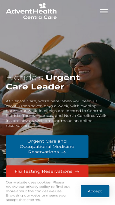 94%Centra Care provides urgent care when you need us most. Open 7 days a week, our convenient walk-in clinics are located in Central Florida, Tampa Bay, and Kansas. We accept most major insurance plans. Walk in or make an appointment.