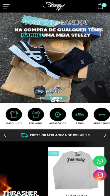 85%as melhores marcas você encontra aqui! thrasher, high, grizzly, dgk, vans, dc, converse, diamond, nike, flip, independent, freeday, santa cruz