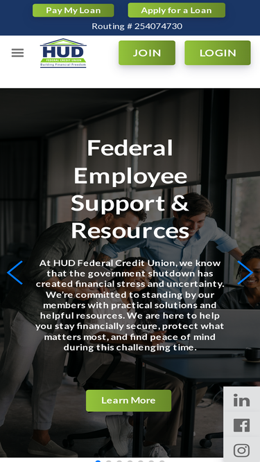 100%The HUD Federal Credit Union is a not-for-profit financial institution serving employees of The Department of Housing and Urban Development (HUD).