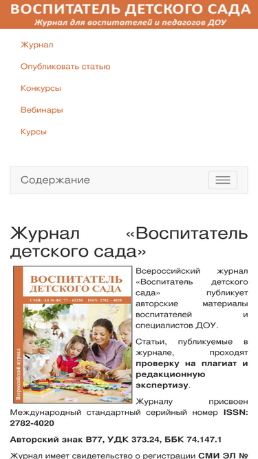 71%воспитатель детского сада - всероссийский журнал, где воспитатели и педагоги дошкольных образовательных учреждений могут ознакомиться с практическими материалами коллег, а также опубликовать свои наработки, принять участие в профессиональных конкурсах, поучаствовать в дистанционных конференциях.