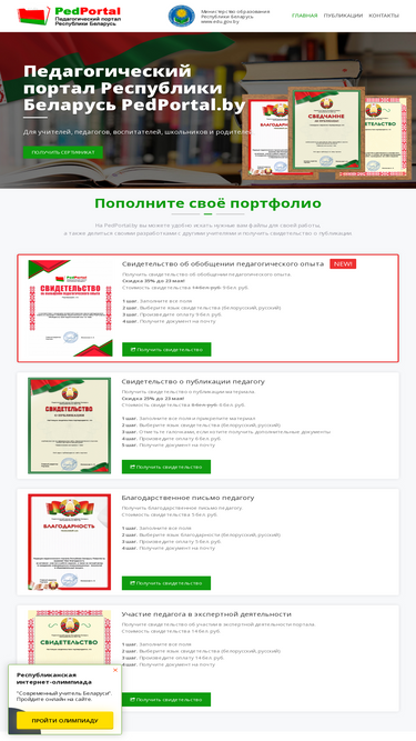 100%на портале вы сможете опубликовать свой материал и получить свидетельство о публикации своего материала на трех языках (белорусском, русском, английском). мы предлагаем интересную, динамичную работу, новые знания и возможности развития педагогу.