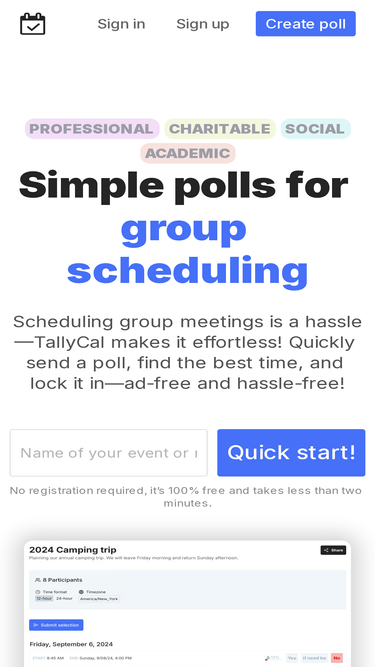 89%Find the best time to meet with your group, with just a few clicks and no ads!