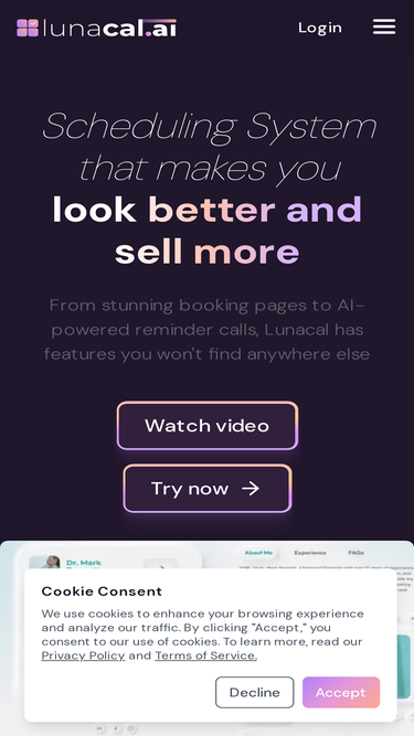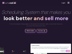 85%Lunacal is a calendar scheduling and appointment booking software for individuals and teams. It turns a booking link into a branded page with live availability, client intake, and optional payments for sessions or packages. It includes calendar sync (including Outlook, Apple calendar, ical, google calendar), buffer times, automated confirmations and meeting reminders on SMS and email, team routing (round-robin and collective booking), embeddable calendar widgets, multi-language pages including Spanish, French, German, etc., GDPR compliance, and a free plan.