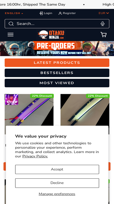 87%Votre boutique Katana et épée Anime Manga Gaming Cinéma et Série