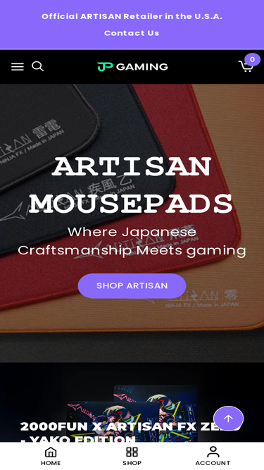74%JP Gaming delivers Japanese gaming products to players in the United States. We are the official retailer of ARTISAN in the U.S. ARTISAN offers six models. ZERO, HIEN, HAYATE OTSU, HAYATE KOU,RAIDEN, SHIDENKAI V2.