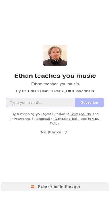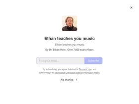 74%Ethan teaches you music. Click to read Ethan teaches you music, by Ethan Hein, a Substack publication with thousands of subscribers.