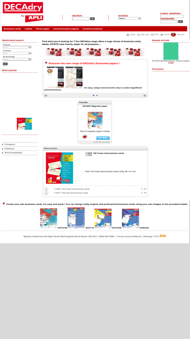 one of the leading company in the manufacture of special papers and business cards. our decadry range offers a huge choice of business cards, labels, cd/dvd case inserts, papers for all purposes,....