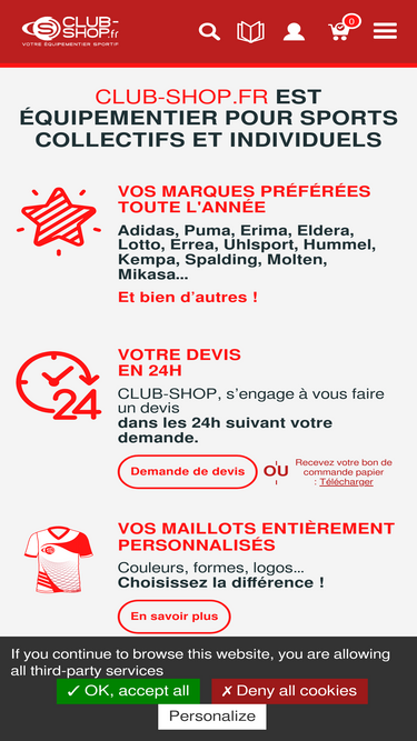 94%Demandez un devis personnalisé pour vos équipements sportifs clubs, écoles ou collectivités grâce à l’expertise CLUB-SHOP