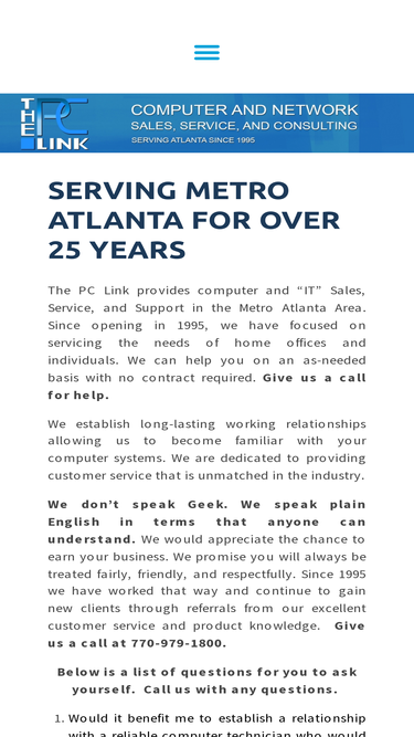 SERVING METRO ATLANTA FOR OVER 30 YEARS The PC Link provides computer and “IT” Sales, Service, and Support in the Metro Atlanta Area. Since opening in 1995, we have focused…