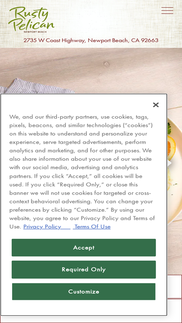 42%Spectacular waterfront views and an eclectic menu of fresh seafood and tender steaks. Rusty Pelican has been a Newport Beach dining destination since 1972.