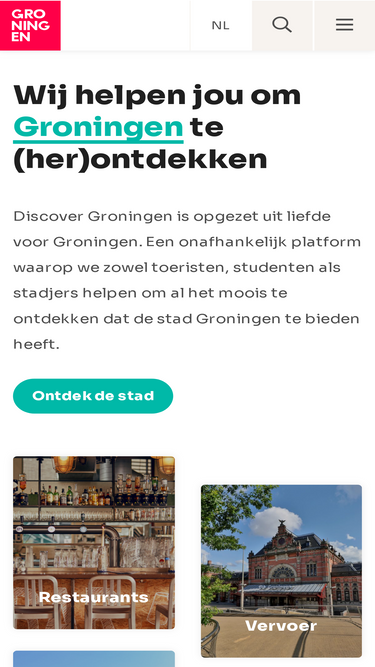 73%Discover Groningen is opgezet uit liefde voor Groningen. We helpen zowel toeristen, studenten als stadjers (inwoners van de stad) om al het moois te ontdekken dat Groningen te bieden heeft. Contactgegevens info@discovergroningen.com Postadres Radesingel 47-Office...
