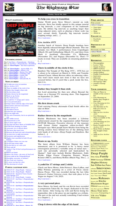 100%the highway star -- the oldest and largest deep purple website, run by the fans for the fans. deep purple and related news, reviews, tour info, music, lyrics, history etc.