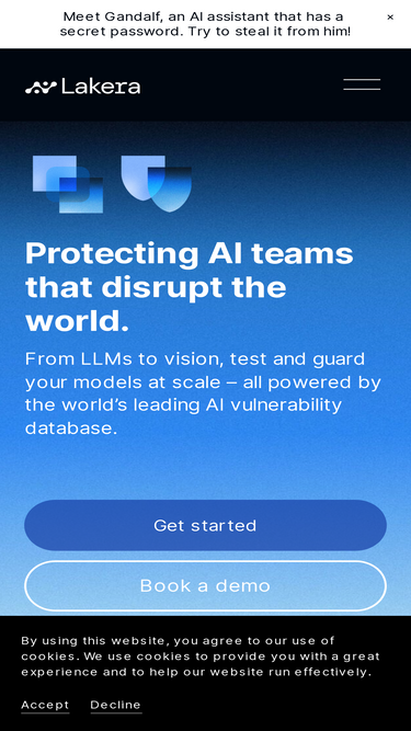 85%Learn how Lakera helps companies deploy secure GenAI. Built by researchers, trusted by enterprises, and behind the viral Gandalf project.