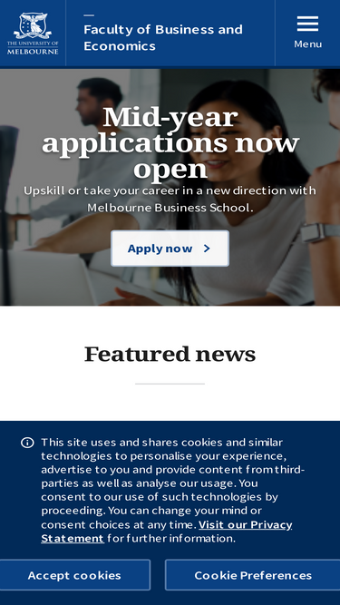 84%The Faculty of Business and Economics is the leading provider of programs in Accounting, Economics, Finance, Management and Marketing and Actuarial Science