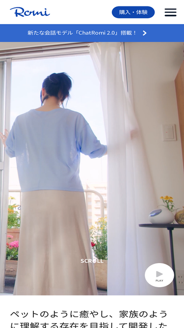 88%会話AIロボットRomi(ロミィ)のオフィシャルサイトです。Romiは、常にあなたに寄り添い共感し、誰よりも理解をしてくれる一生のパートナーのような存在です。