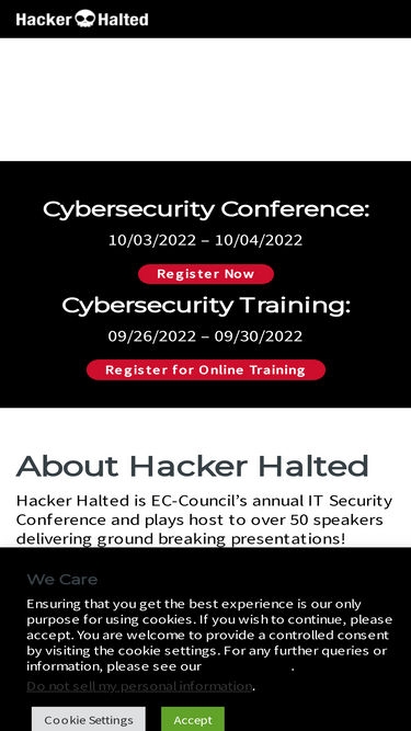 100%*Price before tax (where applicable.) Training Dates: September 28th - October 1st Live Online or Live In Person 10am - 6pm Eastern Time Base Package Includes: Courseware Hands-On Labs Exam Voucher Additional Video Course Hacker Halted Conference Pass Hacker Halted T-Shirt Hotel Stay Upgrade (+$1,000) STORM CTF- After class on Day 2 (Oct 27th.) there will be a Capture the Flag event utilizing the STORM device. Competing is free, but must have a STORM and there will be VISA gift card prizes for 1st, 2nd and 3rd place!