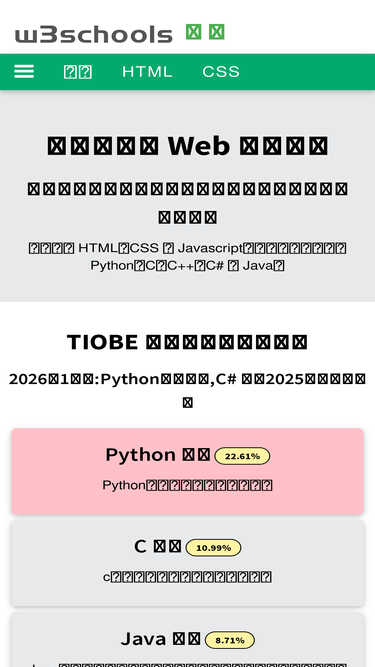 81%w3schools 在线教程提供主要网络编程语言的免费学习教程,参考资料和实例练习。涵盖html,css,javascript,python,java,c,c++,c#,sql,php,bootstrap,xml,ai,chatgpt,bard,人工智能,编程语言,数据库,大数据分析,编程工具,运维工具,通信技术等热门主题。