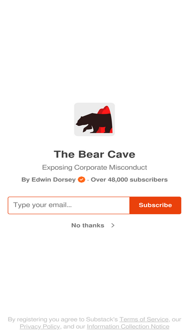 76%Exposing Corporate Misconduct. Click to read The Bear Cave, by Edwin Dorsey, a Substack publication with tens of thousands of subscribers.