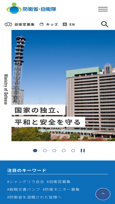 91%防衛省・自衛隊のホームページです。防衛省の政策、組織情報、採用情報、報道資料、広報・イベント、調達情報、所管法令、各種手続、予算等を掲載しています。