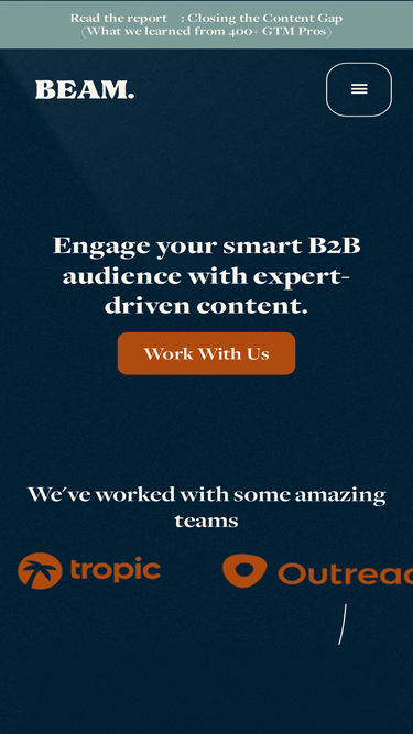 71%Ready to join?See who we're excited to work with:Long-form content writer. Think you'd fit in with the Beam Team and enjoy doing the work? Tell us a little bit about yourself, and we'll be in touch!