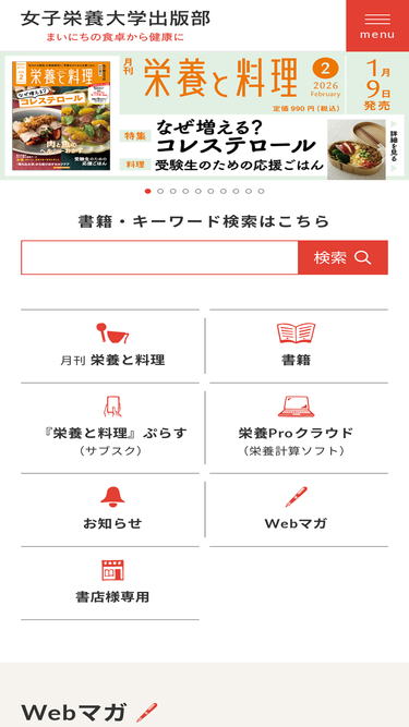 100%女子栄養大学出版部の公式サイト。健康を育む食を提案する月刊『栄養と料理』をはじめ、食事療法の 本、ダイエットのためのカロリーガイドや食品成分表を紹介。