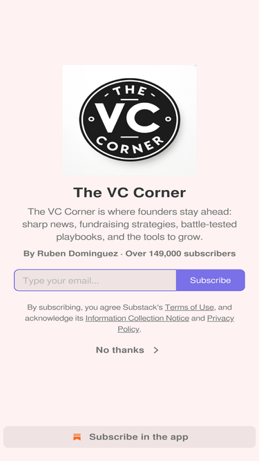 89%The VC Corner is where founders stay ahead — with sharp news, fundraising strategies, battle-tested playbooks, and the tools to grow. Click to read The VC Corner, by Ruben Dominguez, a Substack publication with hundreds of thousands of subscribers.