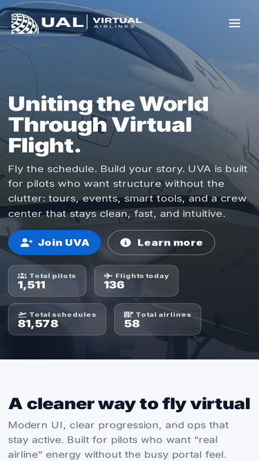 89%United Virtual Airlines (UVA) is the most modern and friendly virtual airline simulating the real-world operations of United Airlines for simulator pilots. Come experience the difference at www.flyuva.org!