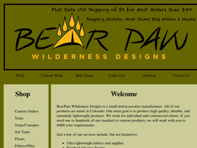 The Bear Den sleeps 1 to 2 people and some gear in the vestibule. It is available in 20d silnylon and .51 Dyneema® (special order). The Bear Den can be lowered or raised depending on the weather conditions and ventilation needs. Two trekking poles or pre-made poles can be used or it can be hung from a tree limb. An extended beak comes with a water proof zipper. The Bear Den is also available with optional perimeter/door netting. Depending on our workload, it will ship out in 2 to 5 week. Contact us for an accurate shipping time or if you need modifications. Initial seam sealing has been applied. Reapplication may be required after prolong usage. Further Instructions will be included with purchase. Specifications:	20D silnylon	50"(plus vestibule area) x 108" x 50" Height (front) x 40" Height (rear)	Approximate weight 18 oz without netting or poles	Cordage included