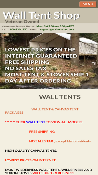 100%PURPOSE: Terms and Conditions are specified to insure customers understand Wall Tent Shop procedures for payment, custom orders, returns, cancellations, damage, back orders, quotes and shipping prior to the customer purchasing any products. CREDIT CARDS: Only Canadian and US issued credit cards accepted. YOUR CREDIT CA