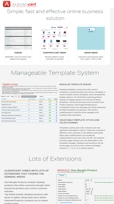 free open source e-commerce shopping cart solution, mvc design, modular template system, php, mysql database, multiple languages, ajax add to cart, seo urls, rss feed