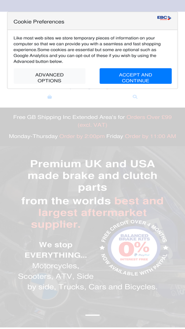 92% Payments can be made online via a 128bit secure internet server, by fax, by post or by telephone. In all payment methods, your funds must have cleared prior to shipment of goods. Where an item is not in stock, no payment will be taken for this item. An estimated delivery date will be sent to you via email. If this is acceptable, payment will be taken from you on the day of shipment Online Payments Payments can be made online via a 128-bit secure internet server, by fax, by post, or by telephone. In all payment methods, your funds must have cleared prior to the shipment of goods. Where an item is not in stock, no payment will be taken for this item. An estimated delivery date will be sent to you via email. If this is acceptable, payment will be taken from you on the day of shipment. By Post If you have a printer, we would suggest that you complete the fax order page online, then print out and complete the credit card details. Payment can be also made by cheque, postal order or bankers draft made payable to EBC Brakes Direct Ltd and post to: EBC Brakes Direct Ltd Upton Valley Way East Northampton NN4 9EF After your postal order has been received, your order is accepted and entered into our system, an email will be sent to you confirming details of your order. By Telephone EBC Brakes Direct Ltd do not accept telephone orders. In Person EBC Brakes Direct Ltd do not accept callers in person. Verified by Visa (VbV) Visa has launched a new service called, "Verified by Visa" or VbV. The aim of the service is to reduce fraudulent use of your credit card whilst purchasing goods on the Internet. Briefly, the service works like this. You register for the service via your card issuer, you will be requested to enter a password. When you shop online at a website that is enabled to accept payments with VbV, you will be prompted in a pop-up window for the password you gave your card issuer when you registered. IMPORTANT:When y