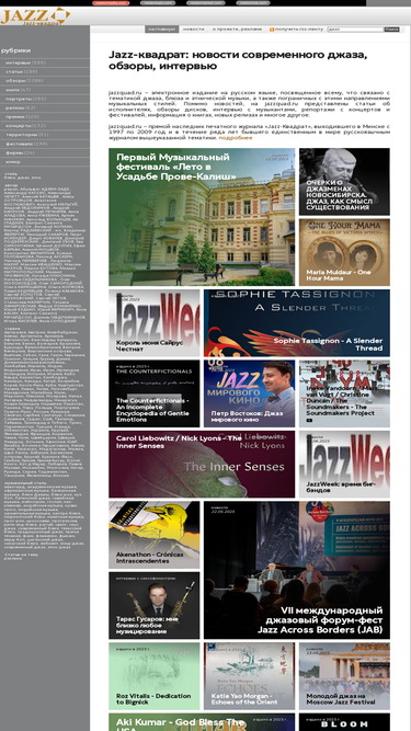 100%jazz-квадрат: новости современного джаза, обзоры, интервью jazzquad.ru – электронное издание на русском языке, посвященное всему, что связано с тематикой джаза, блюза и этнической музыки, а также пограничных с этими направлениями музыкальных стилей. ...