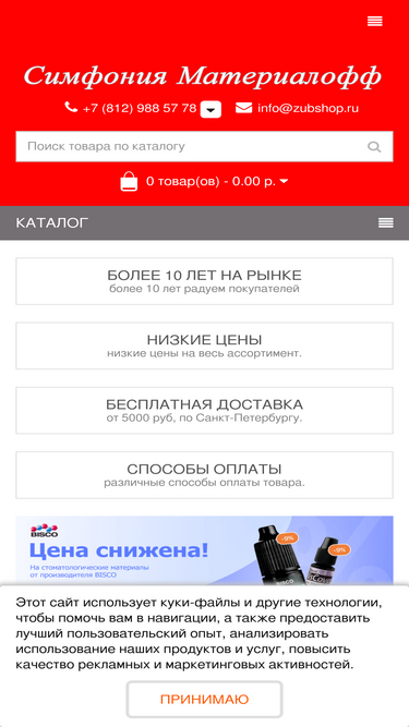 89%стоматологический интернет-магазин "симфония материалофф" предлагает вам широкий выбор оборудования и материалов оптом и в розницу. мы предлагаем матрицы и клинья тор вм, анестетики, аппликационную анестезию, боры алмазные, средства для дезинфекции, ортопедии, терапии, инструменты, эндодонтия, хирургия и пародонтология, а также расходные материалы для салонов. доставка по санкт-петербургу, ленинградской области и по всем регионам россии в короткие сроки. наш телефон: +7 (812) 988-57-78