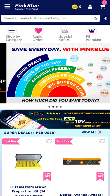 96%PinkBlue is the leading online supplies store for Dental products, materials, instruments and equipments. PinkBlue.in brings in thousands of manufacturers and tens of thousands of healthcare institutions into a single e-commerce platform, thereby creating the go-to platform for reliable discovery of better quality products and their best prices. PinkBlue.in also provides SaaS-based intuitive materials management software to enhance the supply chain management capabilities of both healthcare institutions and manufacturers, by creating complete visibility over a highly complex supply chain. With tens of thousands of products in use, and with almost all of them tagged with expiry dates PinkBlue.in aims to provide clear visibility, availability and freshness of dental materials used in the country.