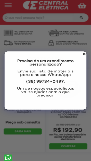 68%Aqui na Loja Central Elétrica você encontra a maior variedade material elétrico e hidráulico para sua obra ou reforma. Diversos produtos de iluminação, lâmpadas, padrão cemig, Tubos, conexões, caixas d'agua, e muito mais. Clique e confira