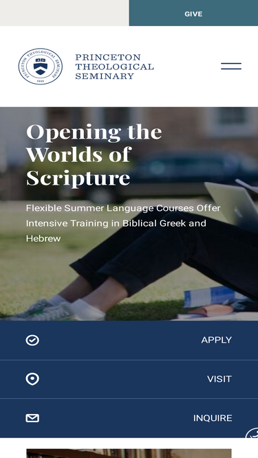 97%Search Princeton Theological Seminary to quickly find programs, courses, events, faculty, and resources across the entire site.