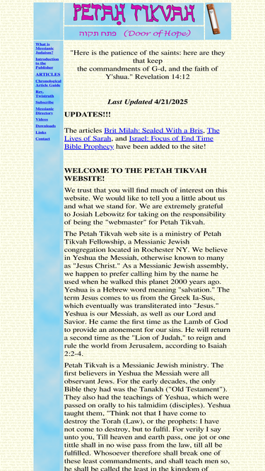 petah tikvah, door of hope. a ministry of petah tikvah fellowship, a messianic jewish congregation.