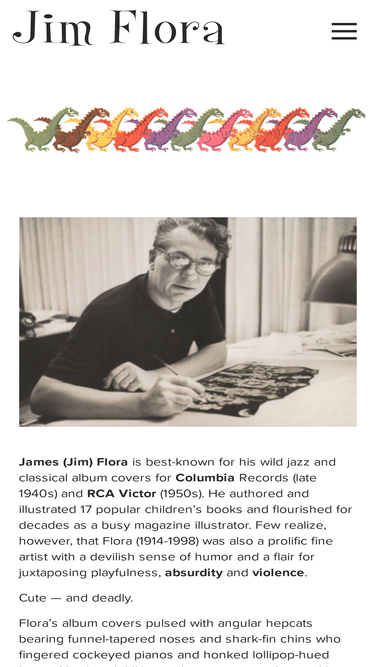100%Jim Flora - galleries of works, news, prints, merchandise, and links.