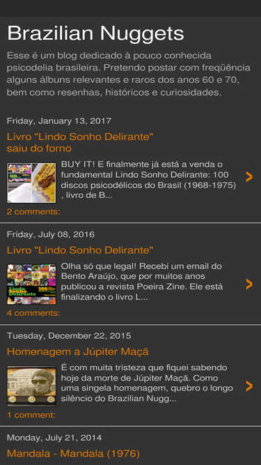62%Esse é um blog dedicado à pouco conhecida psicodelia brasileira. Pretendo postar com freqüência alguns álbuns relevantes e raros dos anos 60 e 70, bem como resenhas, históricos e curiosidades.