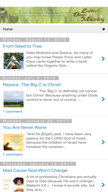 94%The Latter Days is a Christian ministry dedicated to edifying and encouraging the remnant of God during these end times. It is our hope that we be forged into a vessel fit for the Master to use as He allows His people to have eyes to see and ears to hear what saith the Lord in these latter days.